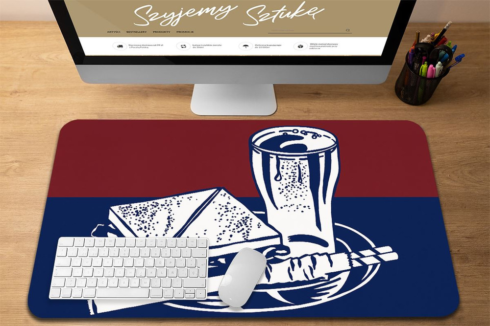 Podkładka pod mysz z nadrukiem na biurko. Rozmiar podkładki to 60 x 40 cm.