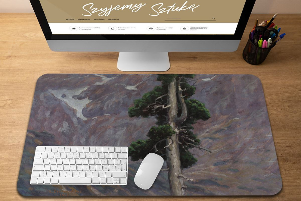 - Podkładka pod mysz w rozmiarze 60 x 40 cm. Praktyczna podkładka mata na biurko, która oprócz praktycznego zastosowania dodatkowo ozdobi Twoje biurko wyjątkowym dziełem sztuki.