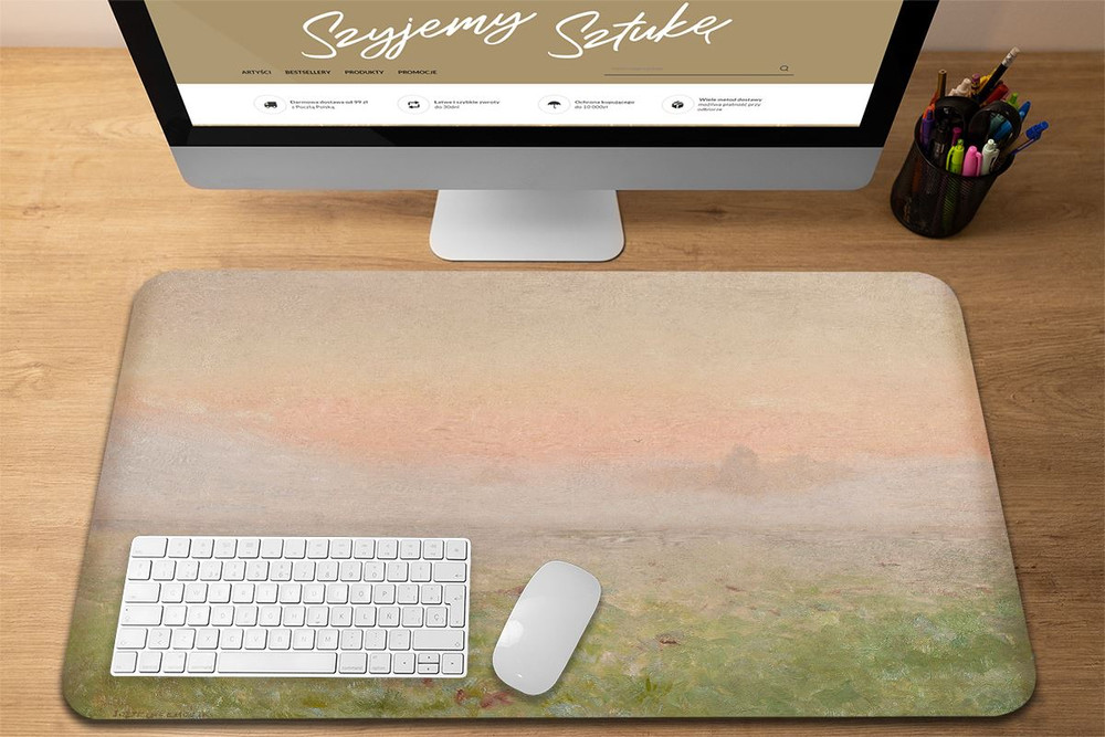 • Podkładka pod mysz w rozmiarze 60 x 40 cm. Praktyczna podkładka mata na biurko, która oprócz praktycznego zastosowania dodatkowo ozdobi Twoje biurko wyjątkowym dziełem sztuki.