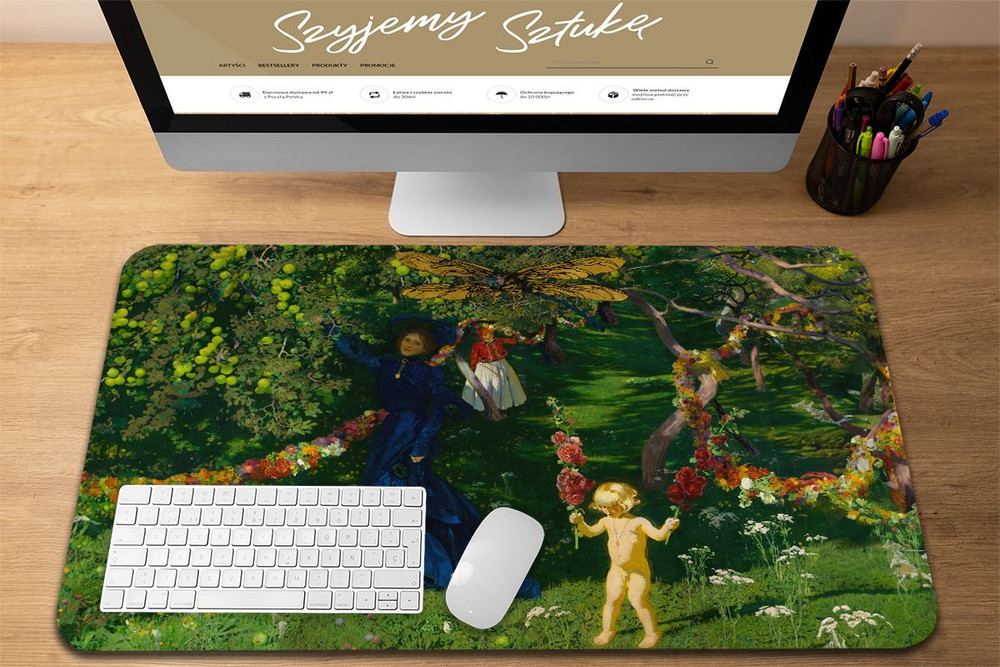 - Podkładka pod mysz w rozmiarze 60 x 40 cm. Praktyczna podkładka mata na biurko, która oprócz praktycznego zastosowania dodatkowo ozdobi Twoje biurko wyjątkowym dziełem sztuki.