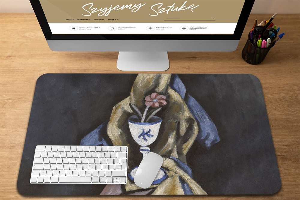 • Podkładka pod mysz w rozmiarze 60 x 40 cm. Praktyczna podkładka mata na biurko, która oprócz praktycznego zastosowania dodatkowo ozdobi Twoje biurko wyjątkowym dziełem sztuki.