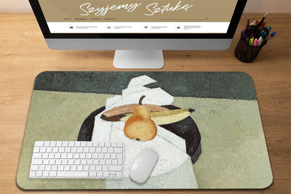 Podkładka pod mysz z nadrukiem na biurko. Rozmiar podkładki to 60 x 40 cm.