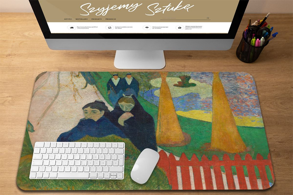 - Podkładka pod mysz w rozmiarze 60 x 40 cm. Praktyczna podkładka mata na biurko, która oprócz praktycznego zastosowania dodatkowo ozdobi Twoje biurko wyjątkowym dziełem sztuki.