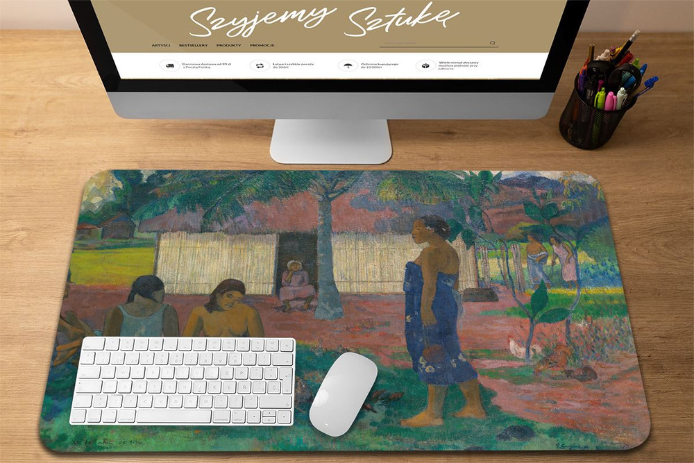 • Podkładka pod mysz w rozmiarze 60 x 40 cm. Praktyczna podkładka mata na biurko, która oprócz praktycznego zastosowania dodatkowo ozdobi Twoje biurko wyjątkowym dziełem sztuki.