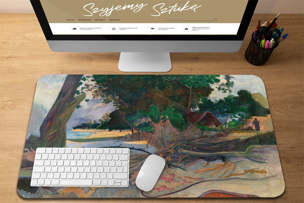- Podkładka pod mysz w rozmiarze 60 x 40 cm. Praktyczna podkładka mata na biurko, która oprócz praktycznego zastosowania dodatkowo ozdobi Twoje biurko wyjątkowym dziełem sztuki.