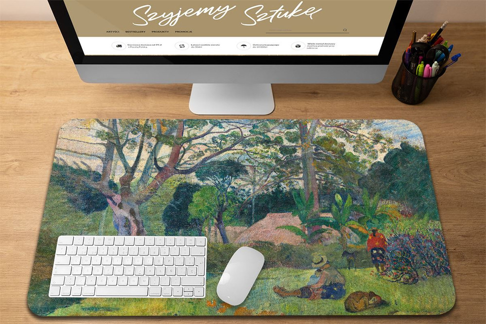 • Podkładka pod mysz w rozmiarze 60 x 40 cm. Praktyczna podkładka mata na biurko, która oprócz praktycznego zastosowania dodatkowo ozdobi Twoje biurko wyjątkowym dziełem sztuki.