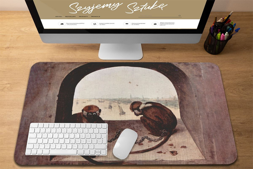 - Podkładka pod mysz w rozmiarze 60 x 40 cm. Praktyczna podkładka mata na biurko, która oprócz praktycznego zastosowania dodatkowo ozdobi Twoje biurko wyjątkowym dziełem sztuki.