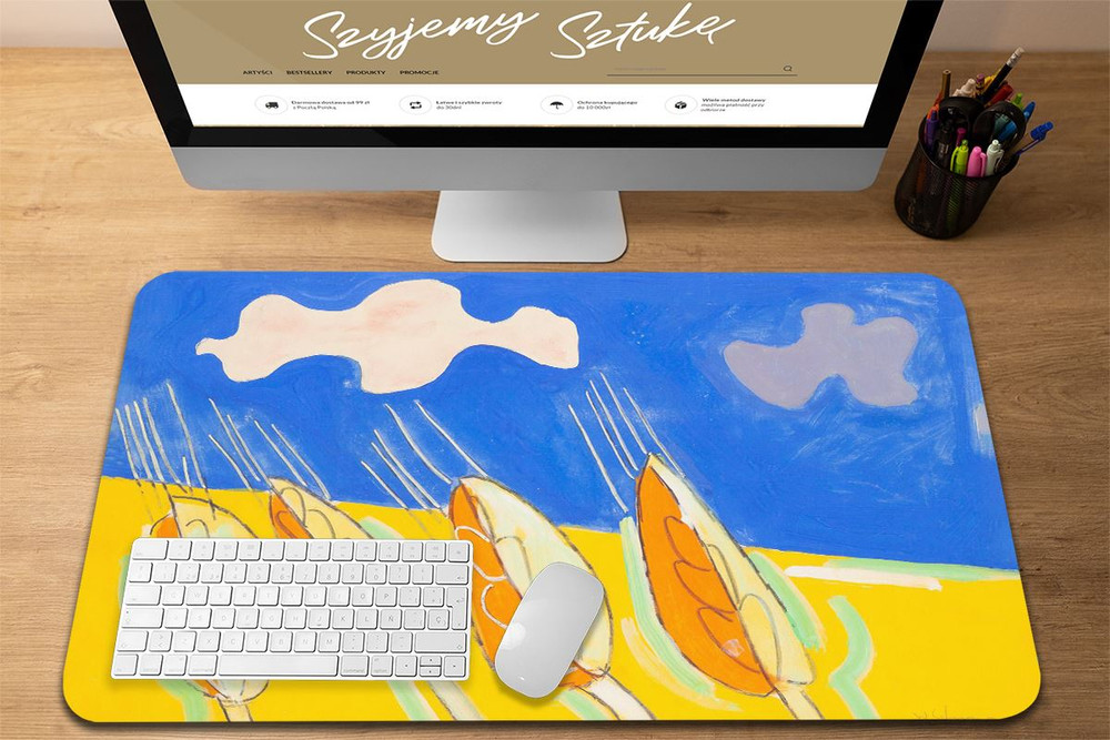 Podkładka pod mysz z nadrukiem na biurko. Rozmiar podkładki to 60 x 40 cm.