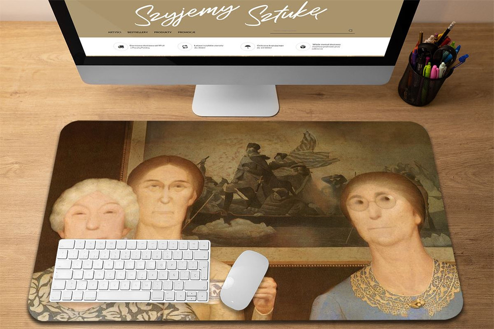 - Podkładka pod mysz w rozmiarze 60 x 40 cm. Praktyczna podkładka mata na biurko, która oprócz praktycznego zastosowania dodatkowo ozdobi Twoje biurko wyjątkowym dziełem sztuki.