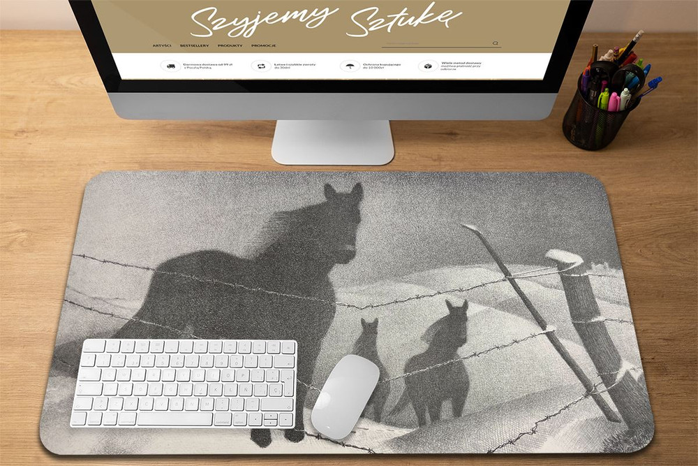 Podkładka pod mysz z nadrukiem na biurko. Rozmiar podkładki to 60 x 40 cm.