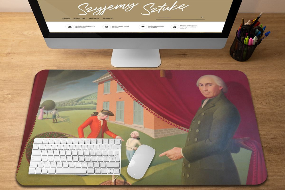 Podkładka pod mysz z nadrukiem na biurko. Rozmiar podkładki to 60 x 40 cm.