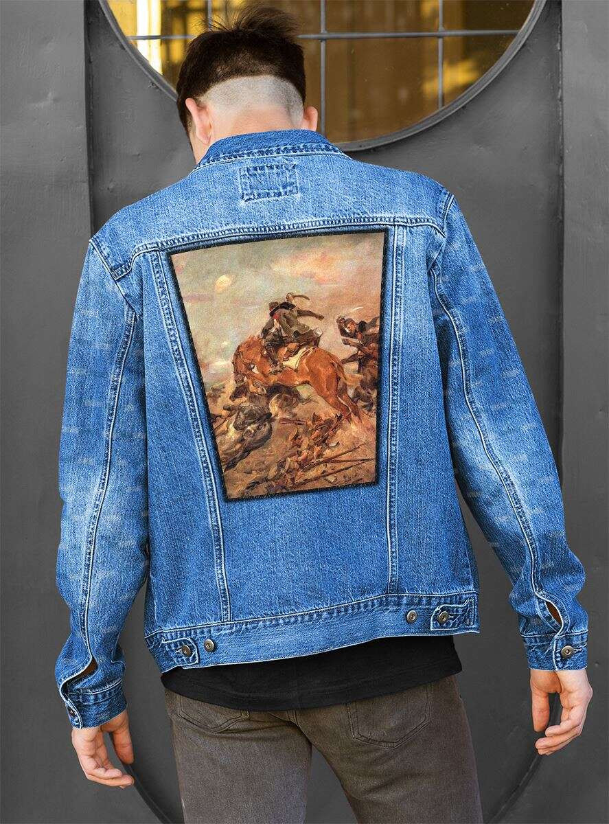 Naszywka umieszczona na plecach prezentuje się imponująco i przyciąga uwagę z daleka. Jej rozmiar, wyraziste detale i kolory wyróżniają ją w tłumie.