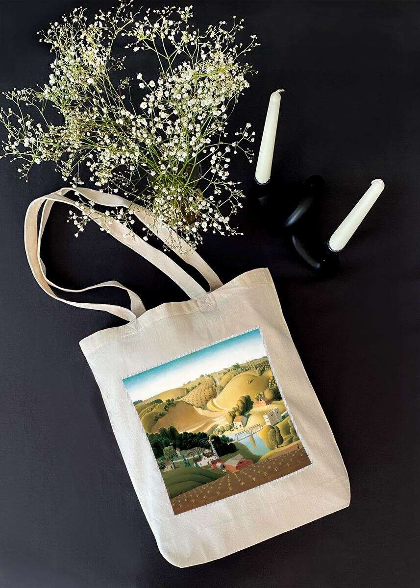 • Bawełniana torba z dużą naszywką z motywem sztuki malarskiej.
