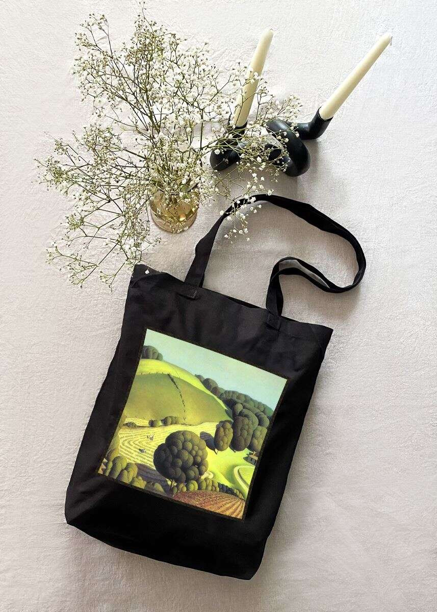 • Bawełniana torba z dużą naszywką z motywem sztuki malarskiej.
