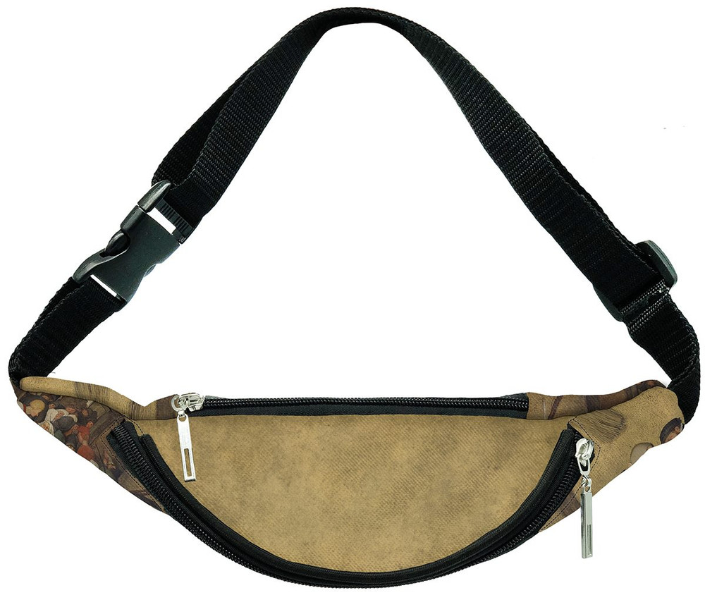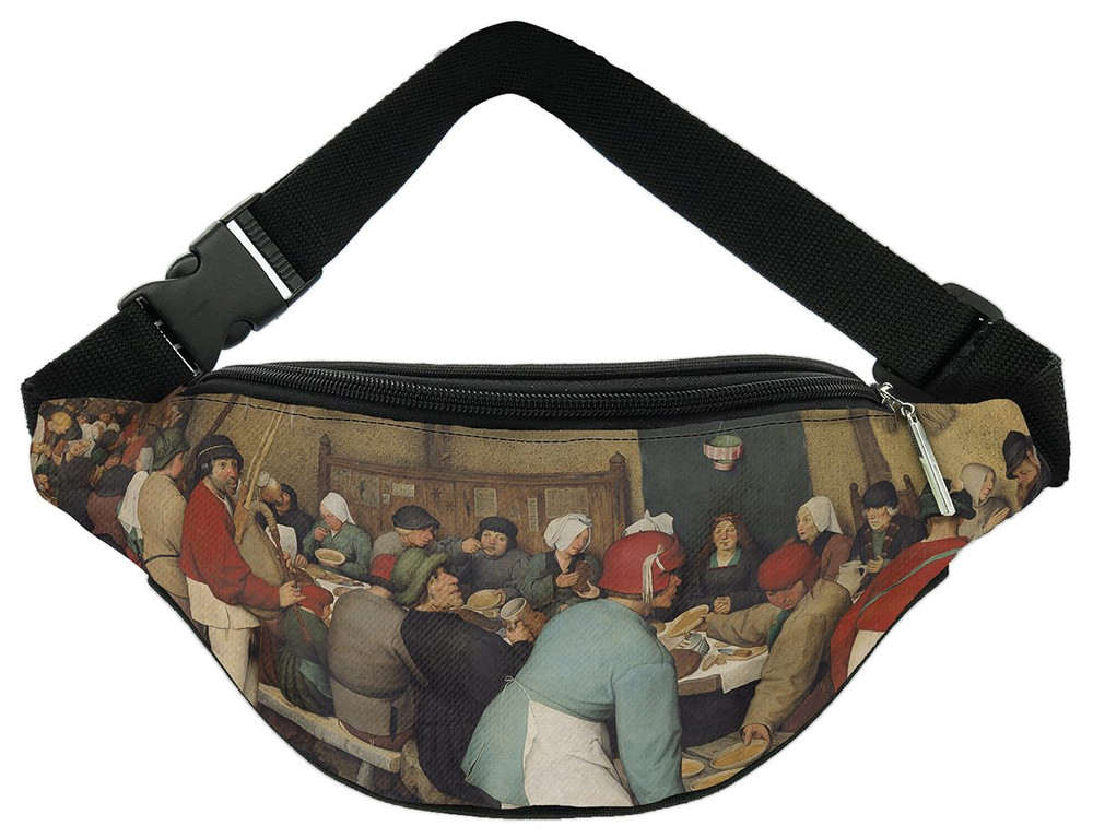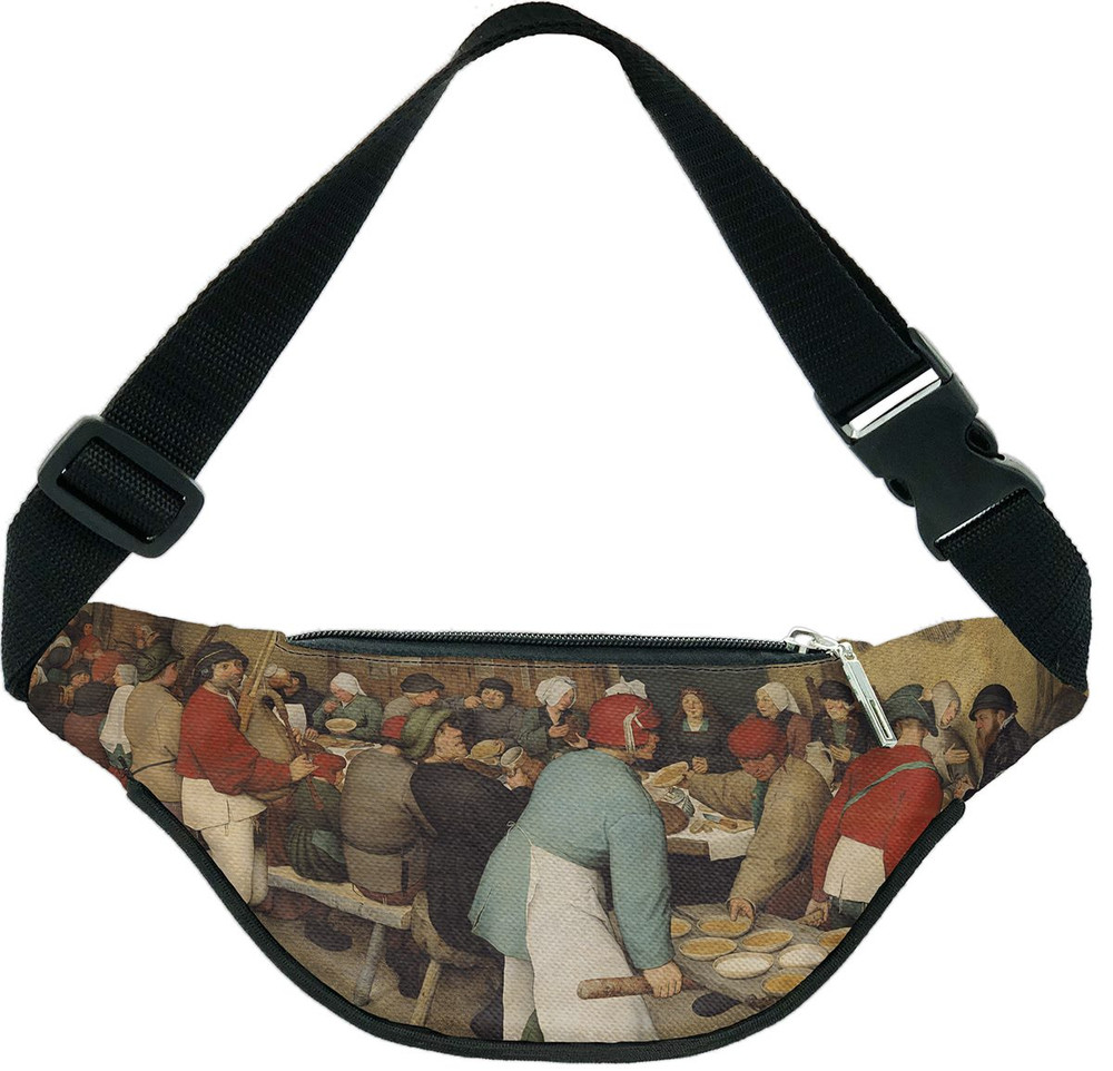 Ten praktyczny dodatek zawiera fragment dzieła „Chłopskie wesele Pieter” autorstwa Bruegel starszy, słynnego w świecie sztuki. Grafika zachowuje bogactwo kolorów i szczegółów dzięki nadrukowi FullPrint, który odwzorowuje każdy detal. Ta nerka jest zarówno funkcjonalna, jak i estetyczna, idealna na co dzień i do noszenia sztuki blisko siebie.