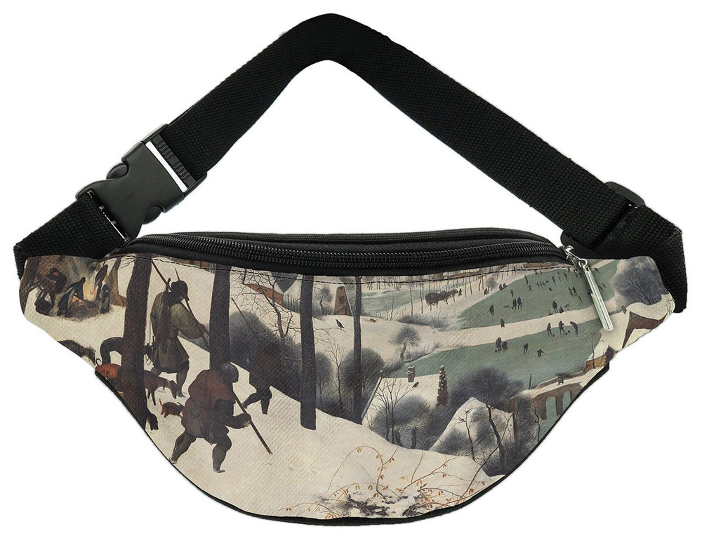 Ta wyjątkowa torba biodrówka zdobi się reprodukcją dzieła „Myśliwi na śniegu Pieter” autorstwa Bruegel starszy. Grafika zachowuje bogactwo kolorów i szczegółów dzięki nadrukowi FullPrint, który odwzorowuje każdy detal. Ta nerka jest zarówno funkcjonalna, jak i estetyczna, idealna na co dzień i do noszenia sztuki blisko siebie.