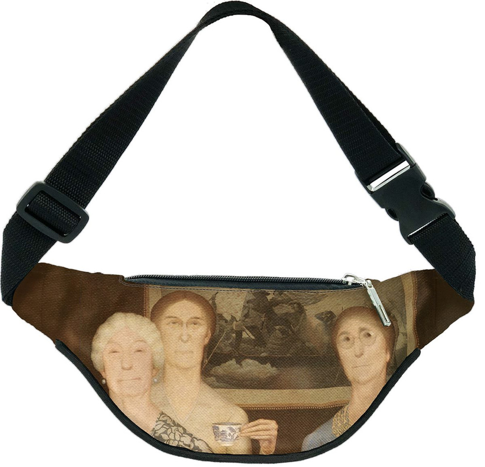 Ta wyjątkowa torba biodrówka zdobi się reprodukcją dzieła „Daughters of Revolution” autorstwa Grant Wood. Grafika zachowuje bogactwo kolorów i szczegółów dzięki nadrukowi FullPrint, który odwzorowuje każdy detal. Ta nerka jest zarówno funkcjonalna, jak i estetyczna, idealna na co dzień i do noszenia sztuki blisko siebie.