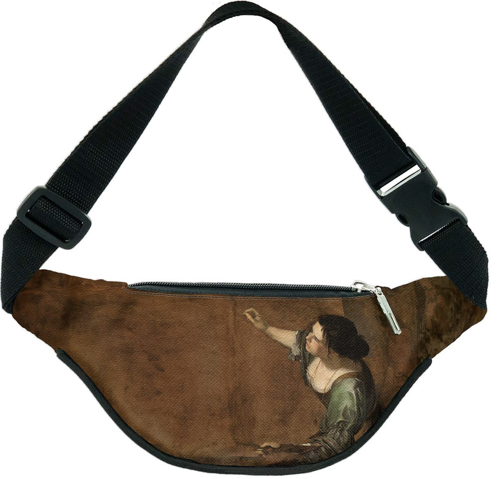 Ta wyjątkowa torba biodrówka zdobi się reprodukcją dzieła „Autoportret jako alegoria malarstwa” autorstwa Artemisia Gentileschi. Dzięki nowoczesnemu nadrukowi FullPrint torba zachowuje intensywność kolorów, sprawdzając się zarówno jako stylowy dodatek, jak i praktyczny element codziennego ubioru dla każdego fana sztuki.