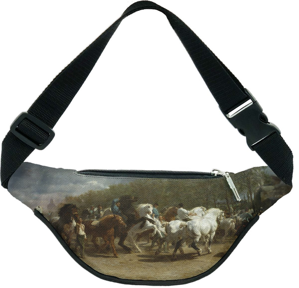 Zainspirowana mistrzostwem artystycznym, ta torba biodrówka przedstawia „Targ koni” stworzone przez Rosa Bonheur. Jakość nadruku FullPrint oddaje piękno kolorów oraz detale dzieła, sprawiając, że jest to idealny wybór dla miłośników sztuki, którzy cenią elegancję i praktyczność każdego dnia.