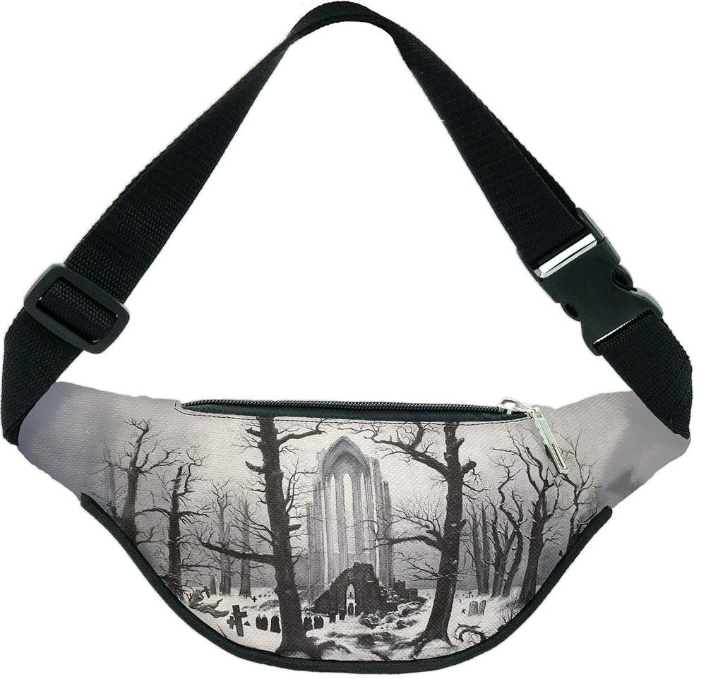 Torba biodrówka „Cmentarz w śniegu Caspar” jest inspirowana dziełem autorstwa David Friedrich, będącego symbolem piękna i historii. Grafika zachowuje bogactwo kolorów i szczegółów dzięki nadrukowi FullPrint, który odwzorowuje każdy detal. Ta nerka jest zarówno funkcjonalna, jak i estetyczna, idealna na co dzień i do noszenia sztuki blisko siebie.