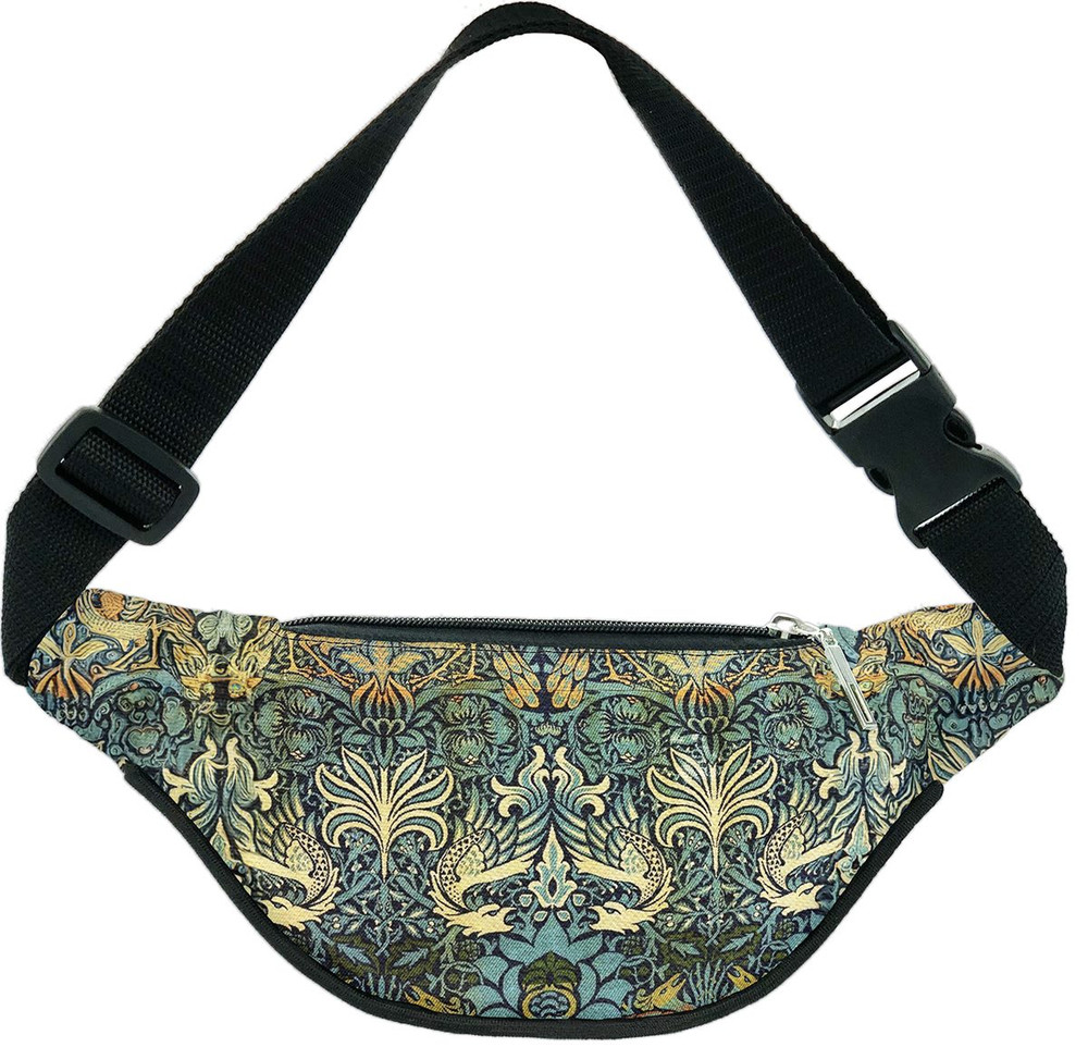 Ta wyjątkowa torba biodrówka zdobi się reprodukcją dzieła „Paw i smok” autorstwa William Morris. Jakość nadruku FullPrint oddaje piękno kolorów oraz detale dzieła, sprawiając, że jest to idealny wybór dla miłośników sztuki, którzy cenią elegancję i praktyczność każdego dnia.