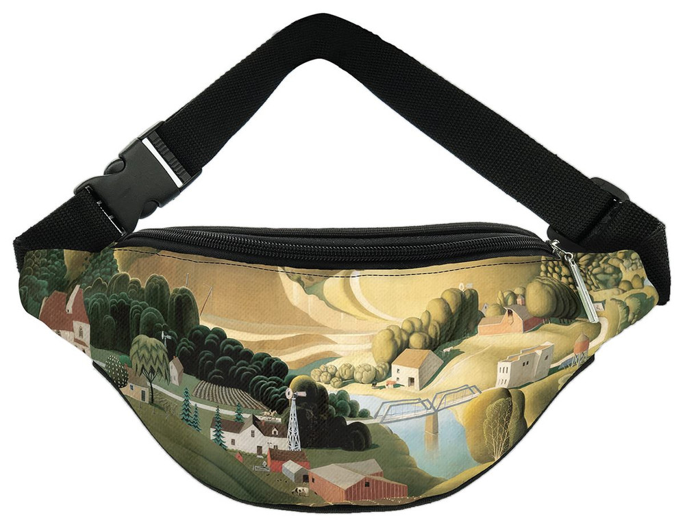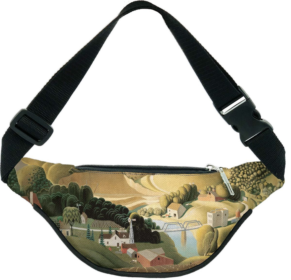 Zainspirowana mistrzostwem artystycznym, ta torba biodrówka przedstawia „Stone City” stworzone przez Grant Wood. Dzięki nowoczesnemu nadrukowi FullPrint torba zachowuje intensywność kolorów, sprawdzając się zarówno jako stylowy dodatek, jak i praktyczny element codziennego ubioru dla każdego fana sztuki.