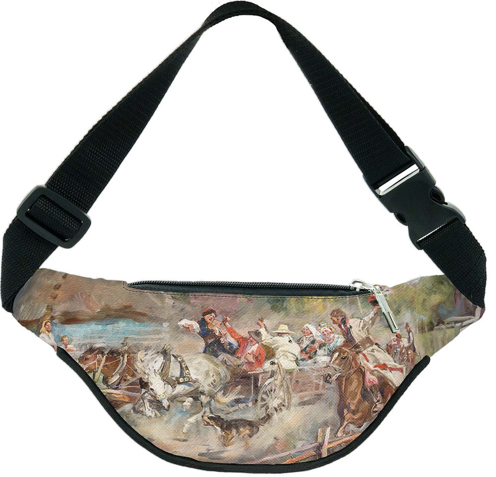 Ten praktyczny dodatek zawiera fragment dzieła „Wesele krakowskie” autorstwa Wojciech Kossak, słynnego w świecie sztuki. Dzięki nowoczesnemu nadrukowi FullPrint torba zachowuje intensywność kolorów, sprawdzając się zarówno jako stylowy dodatek, jak i praktyczny element codziennego ubioru dla każdego fana sztuki.