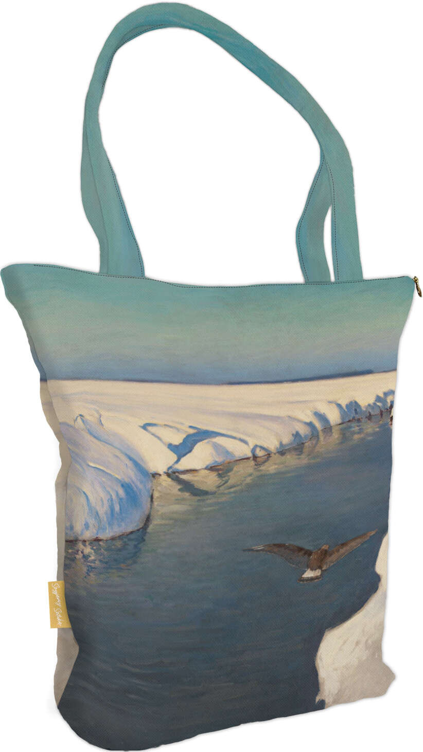 Torba na ramię shopper Pejzaż zimowy z rzeką i ptakiem Julian Fałat