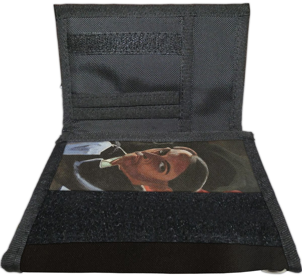 - Portfel zapinany jest na rzep, oraz posiada otwór na łańcuch, lub breloczek np. z kluczami.