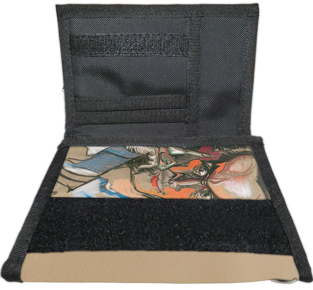 - Portfel zapinany jest na rzep, oraz posiada otwór na łańcuch, lub breloczek np. z kluczami.