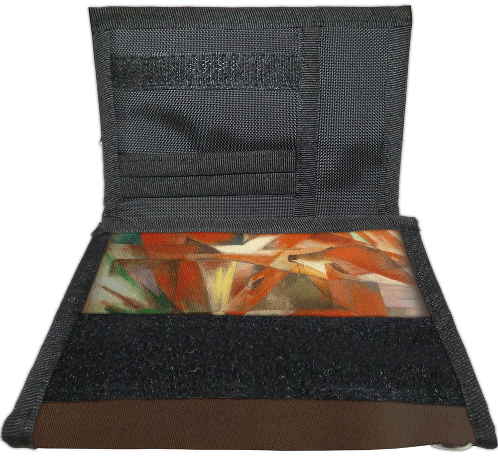 - Portfel posiada aż 10 przegródek, w tym przegródki na dokumenty, banknoty, karty, oraz przezroczyste miejsca na zdjęcia. Przegródka na drobne zamykana jest na suwak. W portfelu bez problemu mieści się dowód rejestracyjny, jak i legitymacja szkolna.
