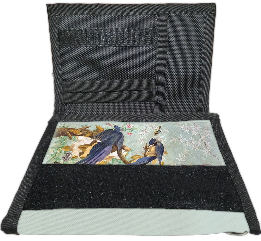 - Portfel zapinany jest na rzep, oraz posiada otwór na łańcuch, lub breloczek np. z kluczami.