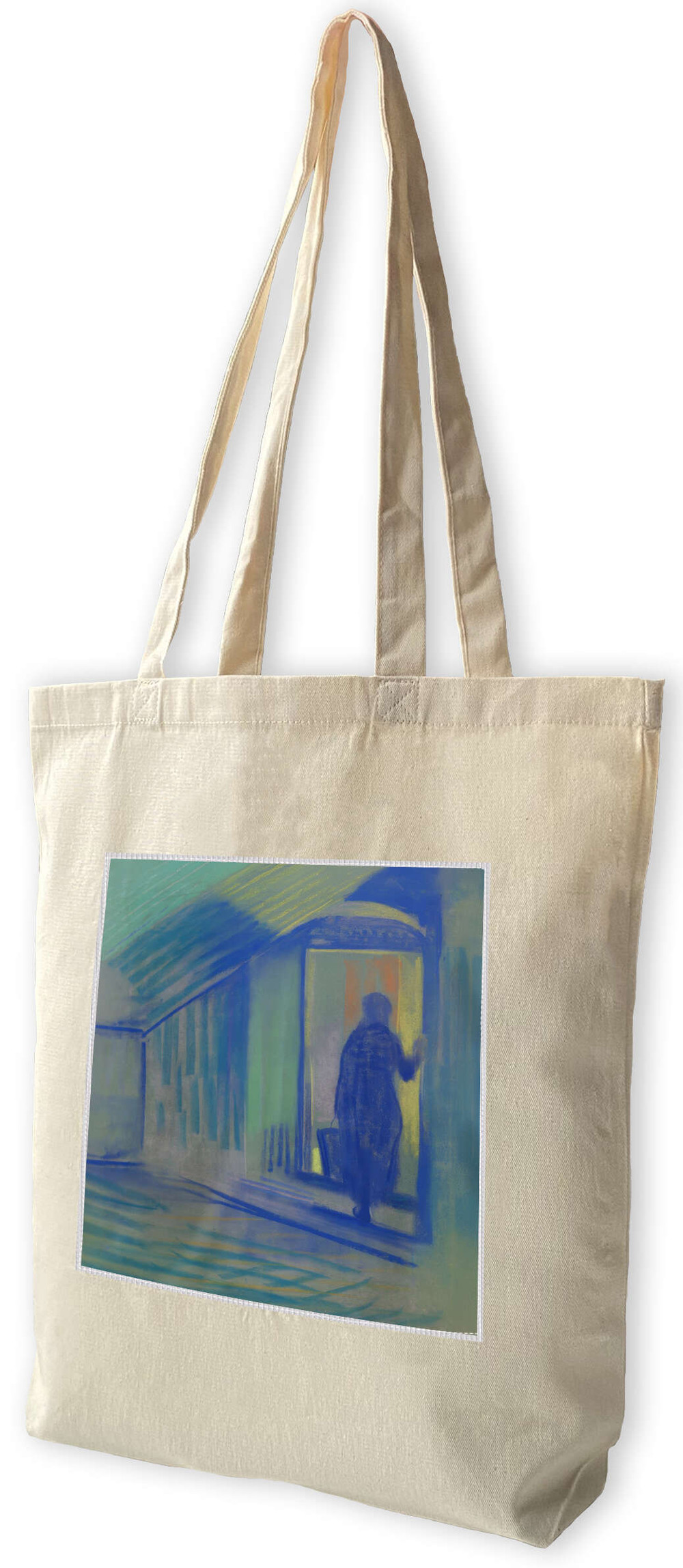 - Bawełniana torba z dużą naszywką z motywem sztuki malarskiej.