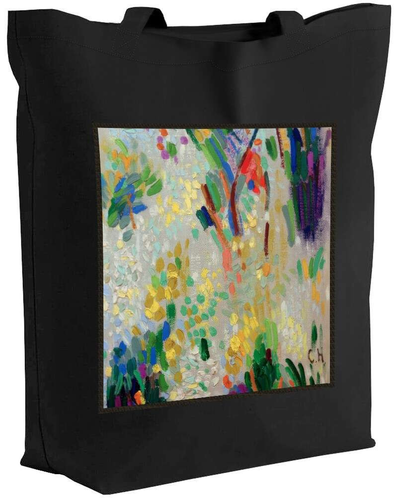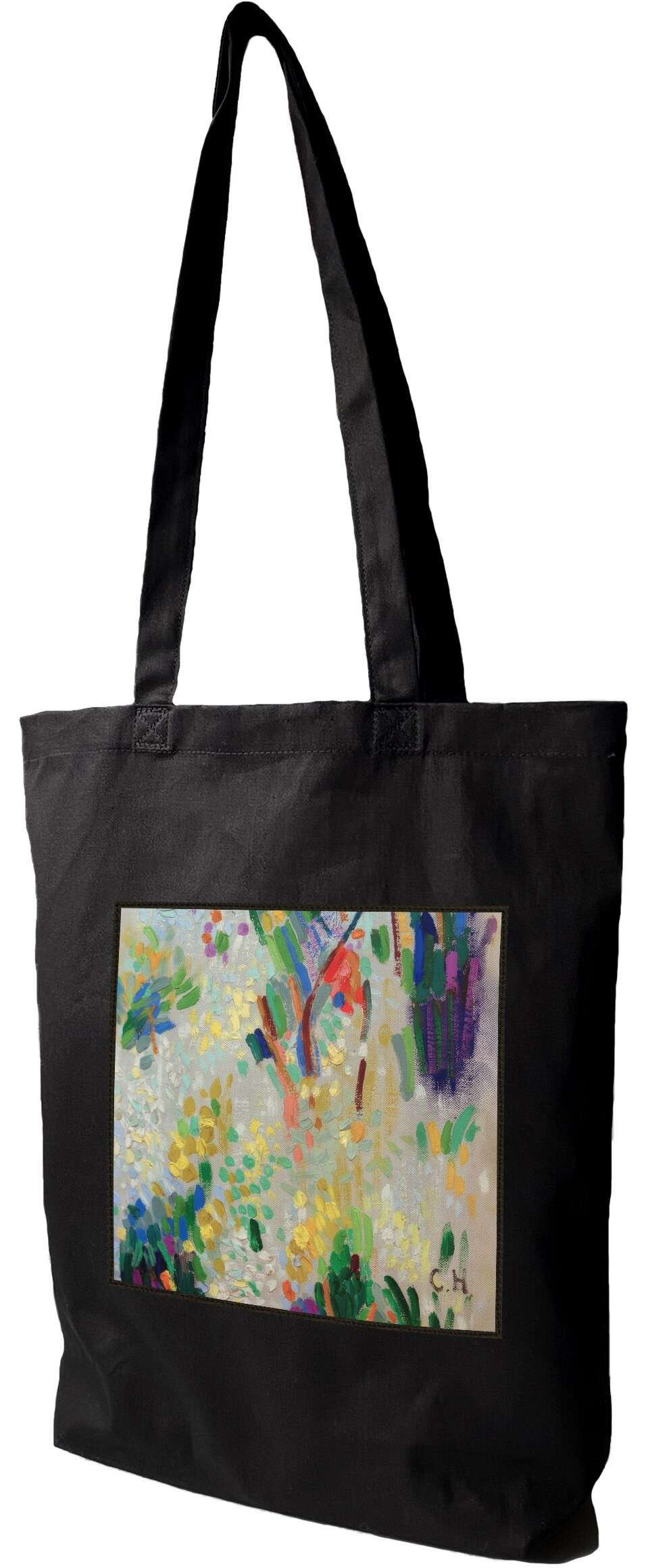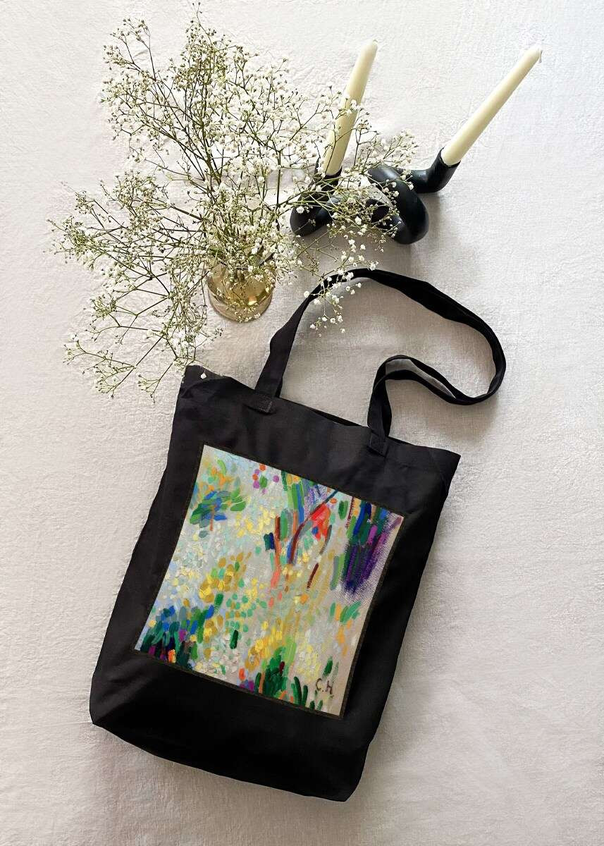 • Bawełniana torba z dużą naszywką z motywem sztuki malarskiej.