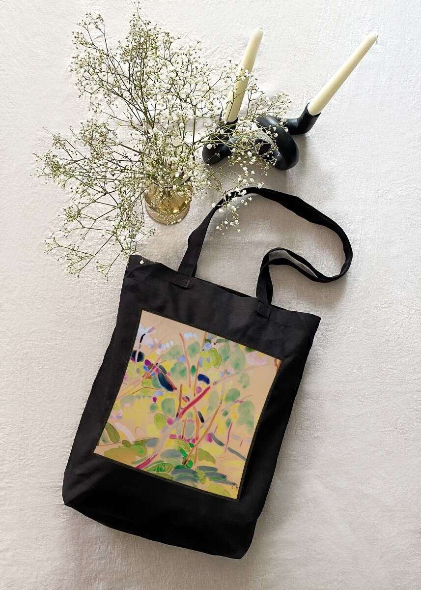 • Bawełniana torba z dużą naszywką z motywem sztuki malarskiej.