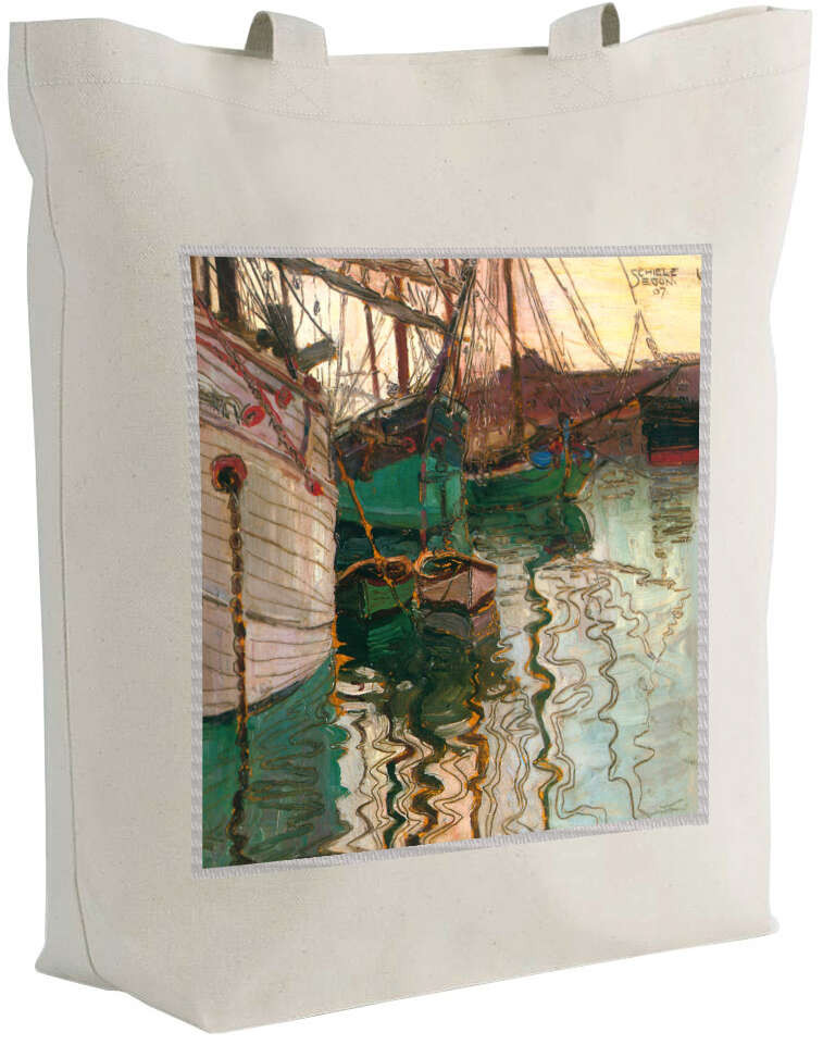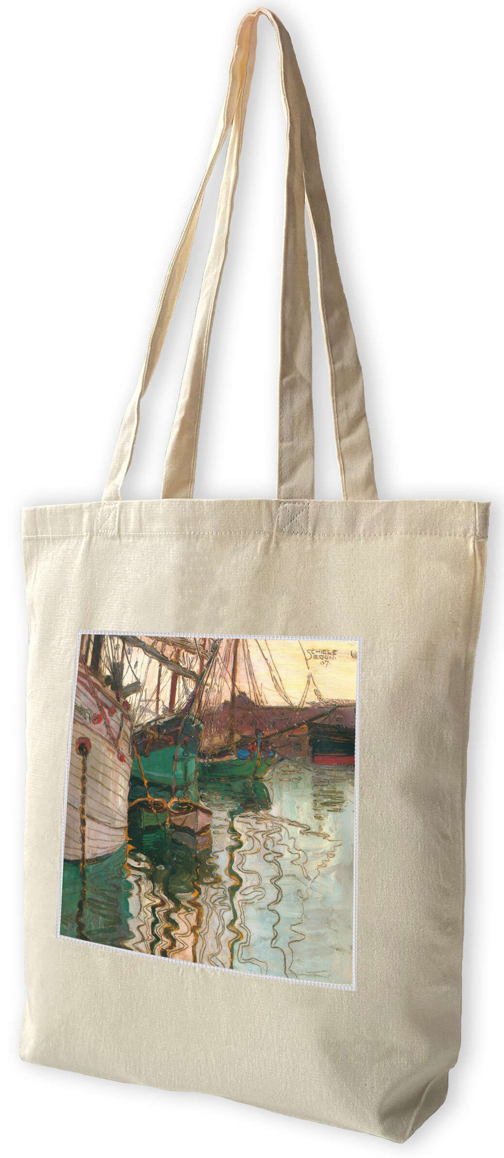 - Bawełniana torba z dużą naszywką z motywem sztuki malarskiej.