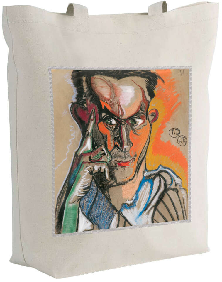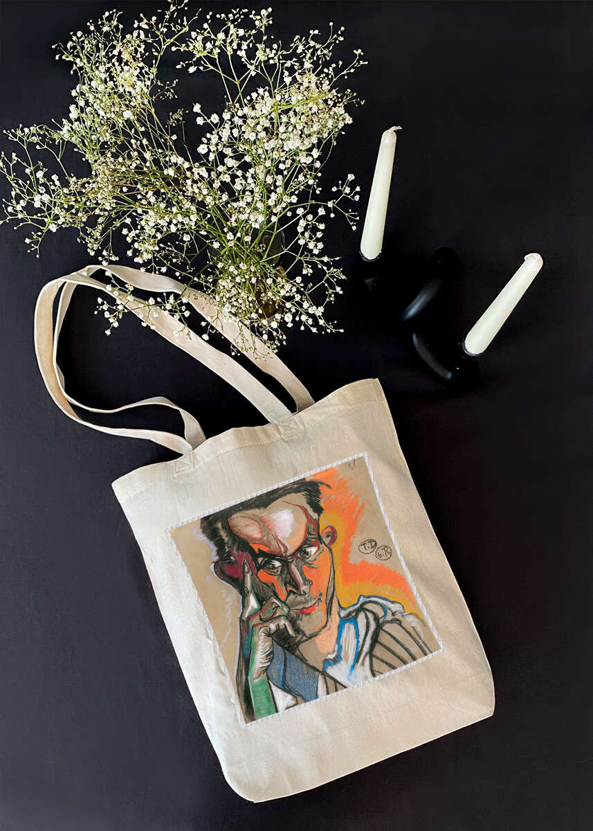 • Bawełniana torba z dużą naszywką z motywem sztuki malarskiej.