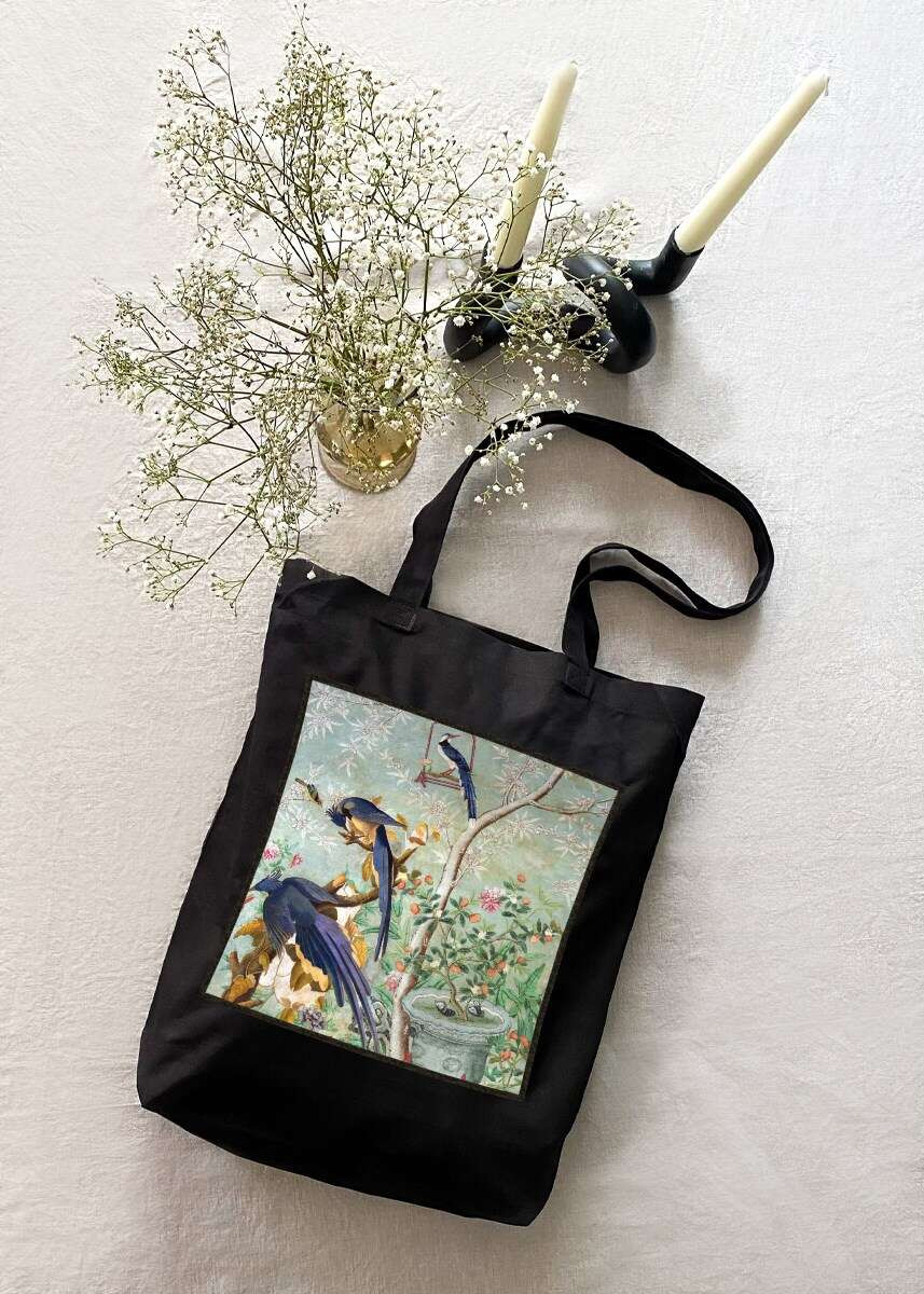 • Bawełniana torba z dużą naszywką z motywem sztuki malarskiej.