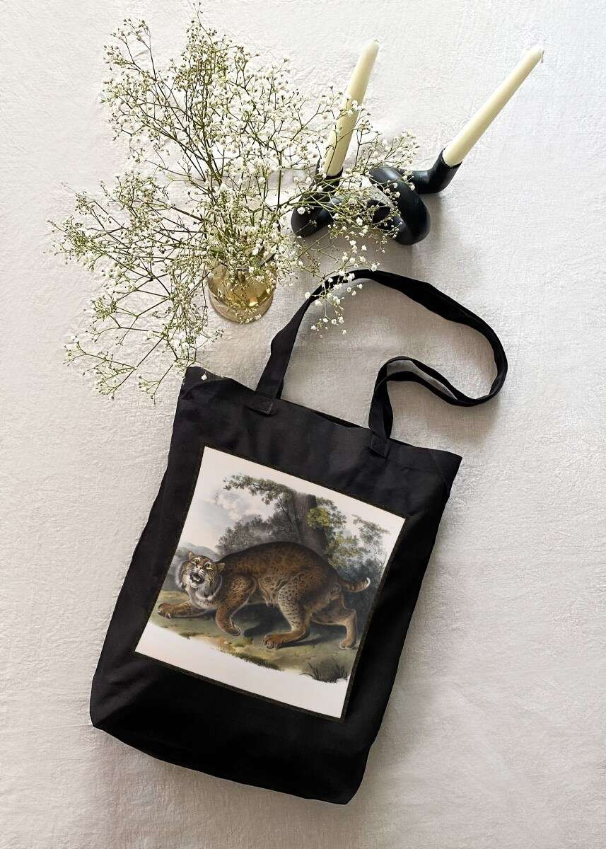 • Bawełniana torba z dużą naszywką z motywem sztuki malarskiej.