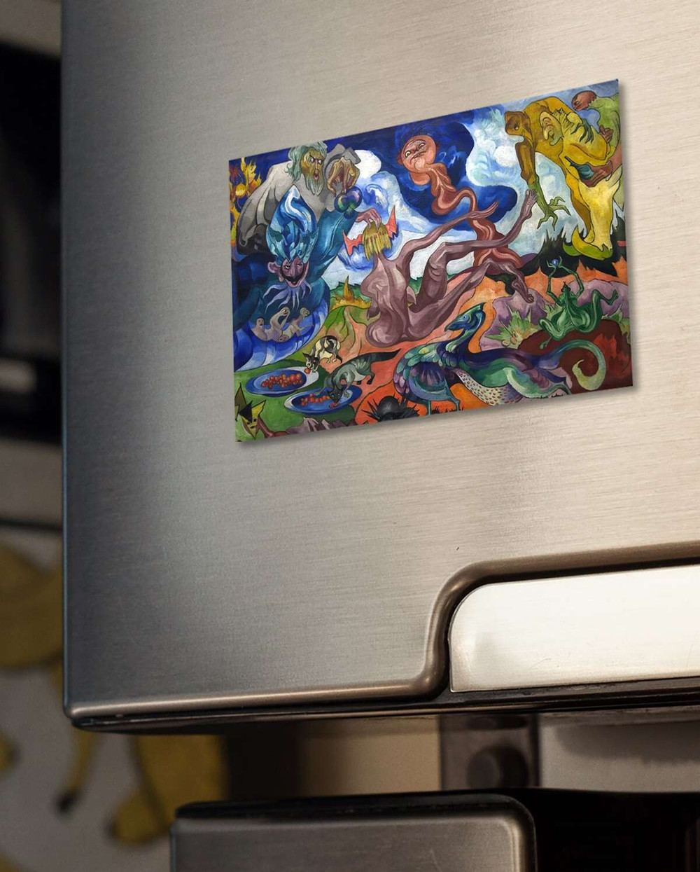 - Magnes na lodówkę w rozmiarze 8 x 5,5 cm.