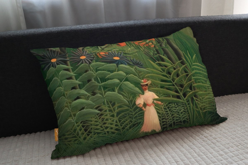Poduszka Woman Walking in an Exotic Forest Henri Rousseau