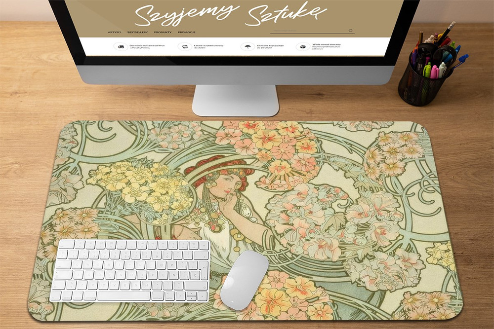 Podkładka pod mysz z nadrukiem na biurko. Rozmiar podkładki to 60 x 40 cm.