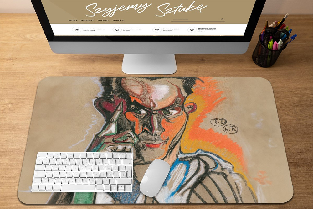 Podkładka pod mysz z nadrukiem na biurko. Rozmiar podkładki to 60 x 40 cm.