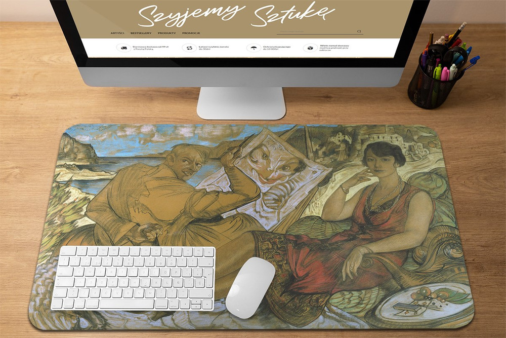 - Podkładka pod mysz w rozmiarze 60 x 40 cm. Praktyczna podkładka mata na biurko, która oprócz praktycznego zastosowania dodatkowo ozdobi Twoje biurko wyjątkowym dziełem sztuki.