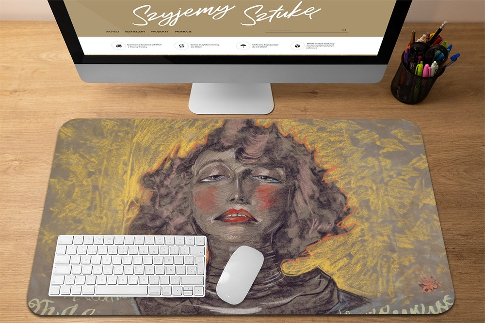 - Podkładka pod mysz w rozmiarze 60 x 40 cm. Praktyczna podkładka mata na biurko, która oprócz praktycznego zastosowania dodatkowo ozdobi Twoje biurko wyjątkowym dziełem sztuki.