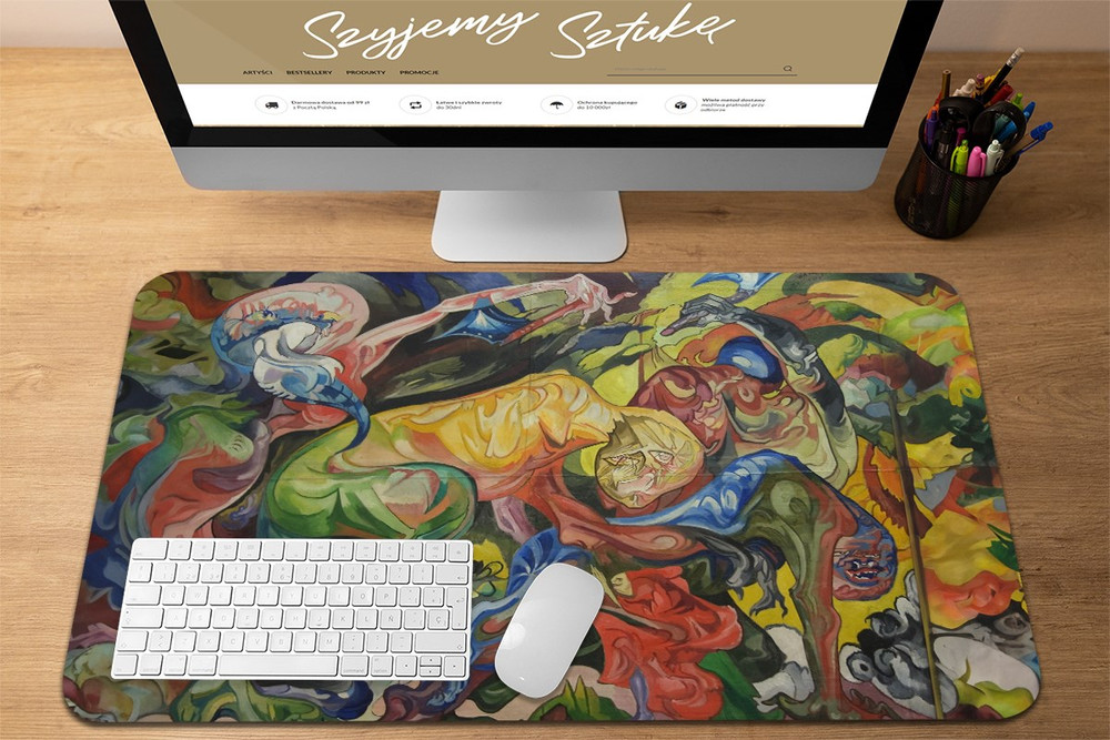 • Podkładka pod mysz w rozmiarze 60 x 40 cm. Praktyczna podkładka mata na biurko, która oprócz praktycznego zastosowania dodatkowo ozdobi Twoje biurko wyjątkowym dziełem sztuki.