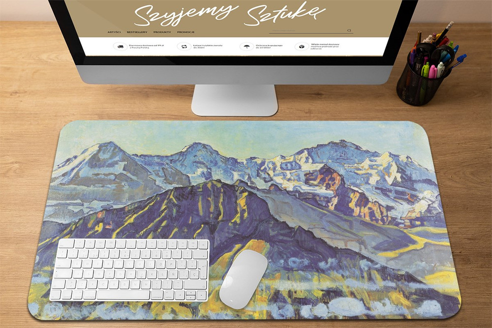 • Podkładka pod mysz w rozmiarze 60 x 40 cm. Praktyczna podkładka mata na biurko, która oprócz praktycznego zastosowania dodatkowo ozdobi Twoje biurko wyjątkowym dziełem sztuki.