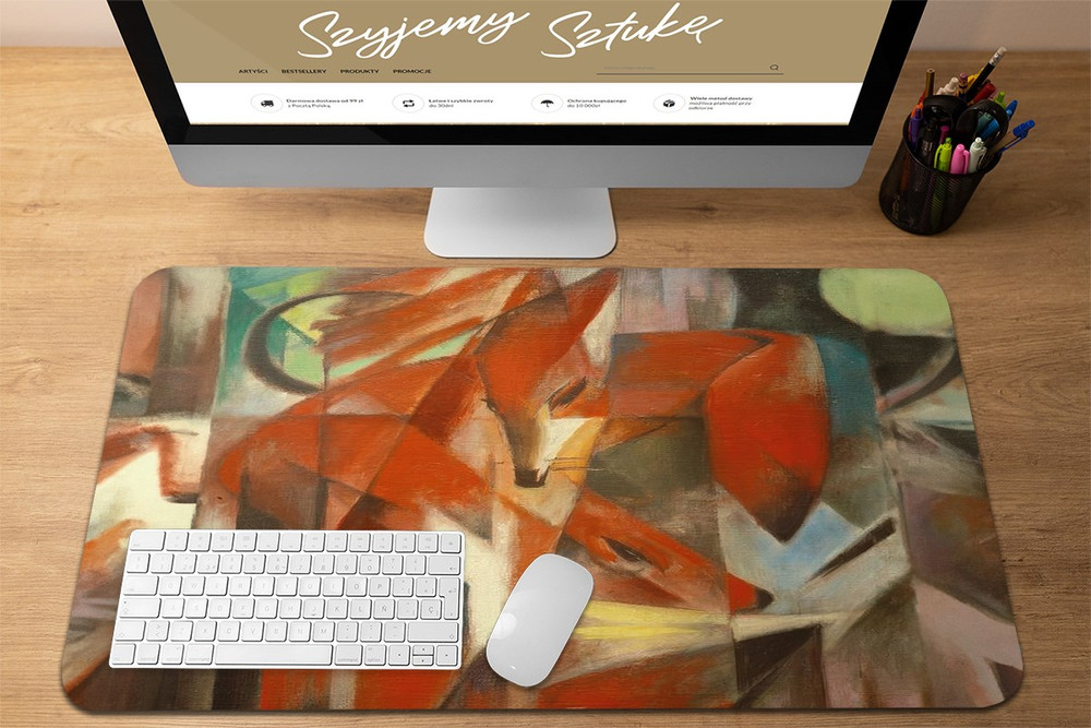 - Podkładka pod mysz w rozmiarze 60 x 40 cm. Praktyczna podkładka mata na biurko, która oprócz praktycznego zastosowania dodatkowo ozdobi Twoje biurko wyjątkowym dziełem sztuki.