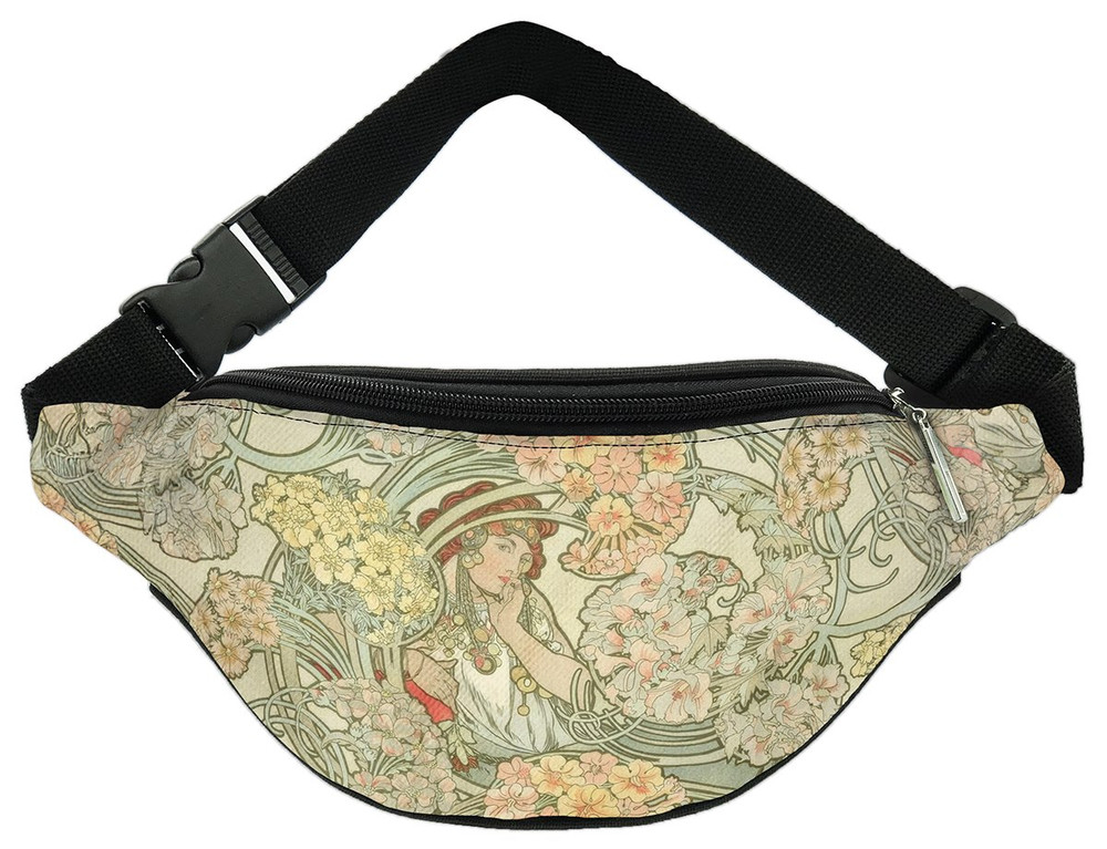 Zainspirowana mistrzostwem artystycznym, ta torba biodrówka przedstawia „Langage des fleurs (Język kwiatów)” stworzone przez Alfons Mucha. Dzięki nowoczesnemu nadrukowi FullPrint torba zachowuje intensywność kolorów, sprawdzając się zarówno jako stylowy dodatek, jak i praktyczny element codziennego ubioru dla każdego fana sztuki.