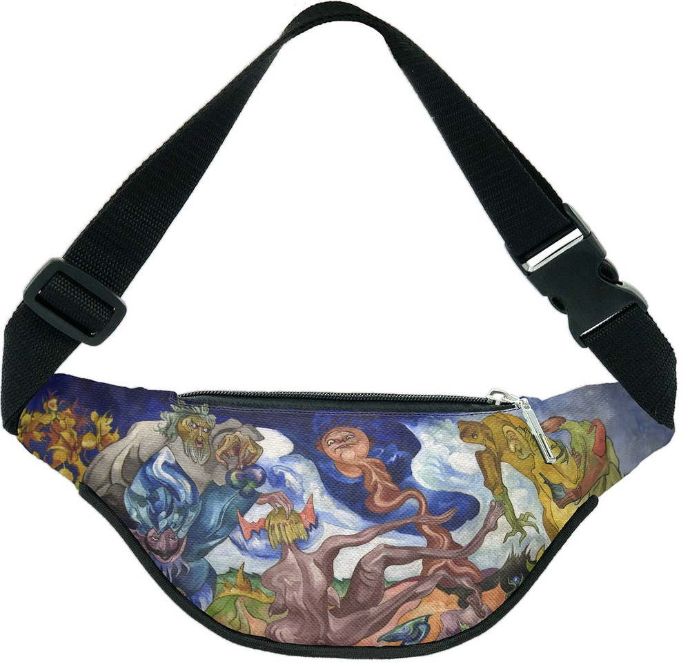 Ta wyjątkowa torba biodrówka zdobi się reprodukcją dzieła „Tworzenie” autorstwa świata Witkacy. Grafika zachowuje bogactwo kolorów i szczegółów dzięki nadrukowi FullPrint, który odwzorowuje każdy detal. Ta nerka jest zarówno funkcjonalna, jak i estetyczna, idealna na co dzień i do noszenia sztuki blisko siebie.